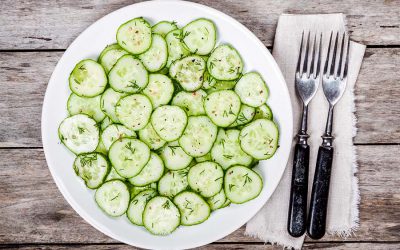 This cucumber salad is quick and easy and uses pickled cucumbers as the main ingredient. Seasoned with dill, horseradish and dijon mustard, it’s excellent as an appetizer served on rye bread and topped with cheese.